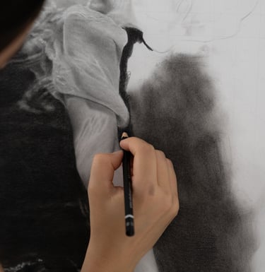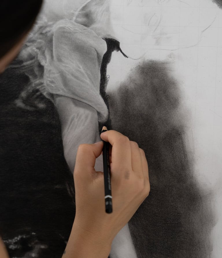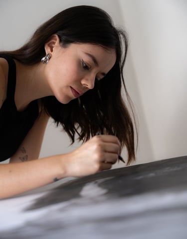 El dibujo con grafito es una técnica rica en trazos y valores tonales, resultado de un proceso largo y meditativo. Es por eso que me ofrece muchísima introspección como artista y como persona, brindándome un espacio de conversación íntima con el papel.