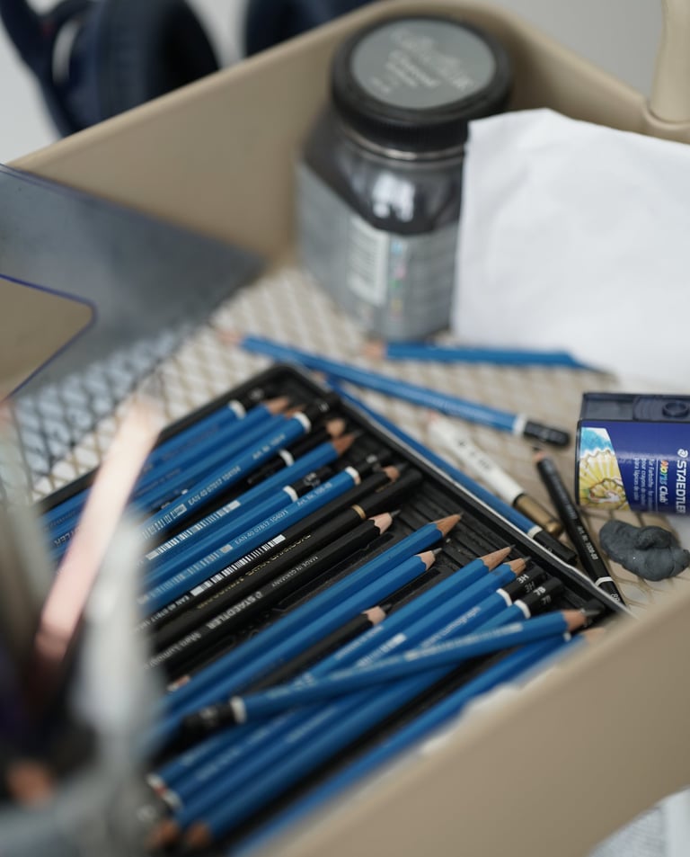 Lo que utilizo se podría considerar casi rudimentario: lápiz, papel, borrador. Tres herramientas con las que hemos crecido pero que ofrecen muchísimo más de lo que parecen ser capaces. Es por eso que me parecen mágicas y me encanta compartir con otros su potencial, ya sea con mis procesos o con mis obras terminadas.
